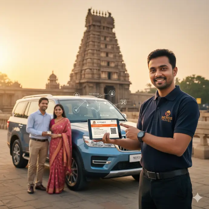 At Nerds Travel, we bring the world of Indian tourism right to your fingertips with personalized, reliable, and immersive With over 4 years of dedicated experience. Nerds Travel is your trusted partner for unforgettable travel experiences across India. With expert knowledge and personalized service, we specialize in temple darshan, hotel bookings, and reliable transport solutions. Our dedicated team ensures every journey is smooth, comfortable, and tailored to your unique needs. Choose Nerds Travel for a seamless adventure that connects you with India's rich heritage and vibrant culture.